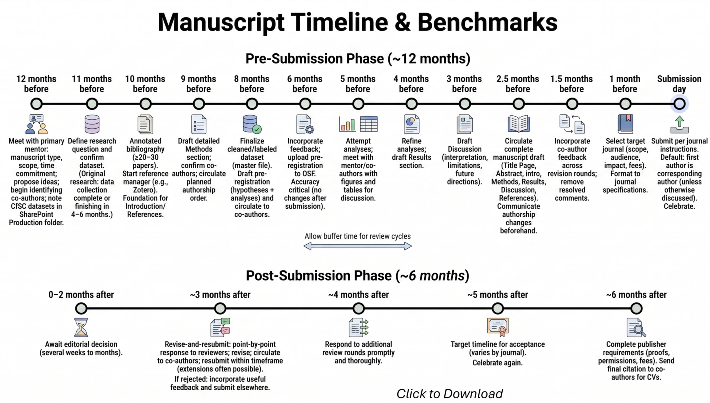 The timeline below is designed to guide you through both the pre-submission and post-submission phases. Adherence to this timeline is critical to ensure forward progress and a high-quality final product.
